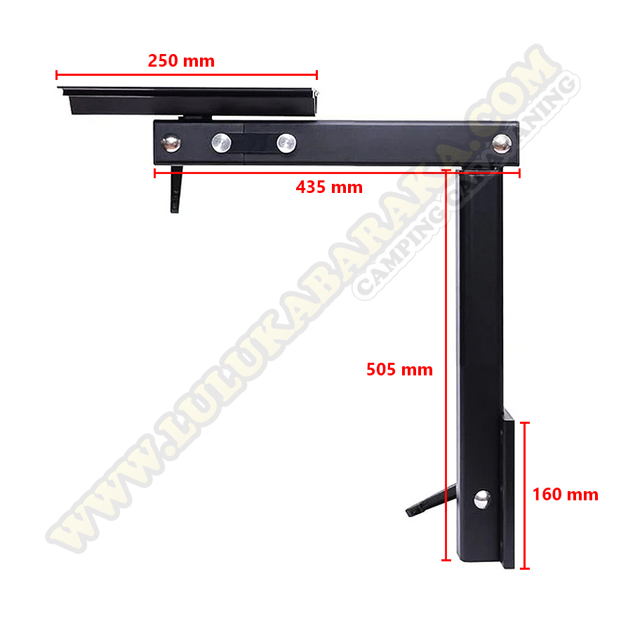 Il pivote, tourne et se replie sur trois axes. Son bras est doté d'un mécanisme de pliage à 90°, permettant de faire pivoter le plateau et de le ranger sans démontage.